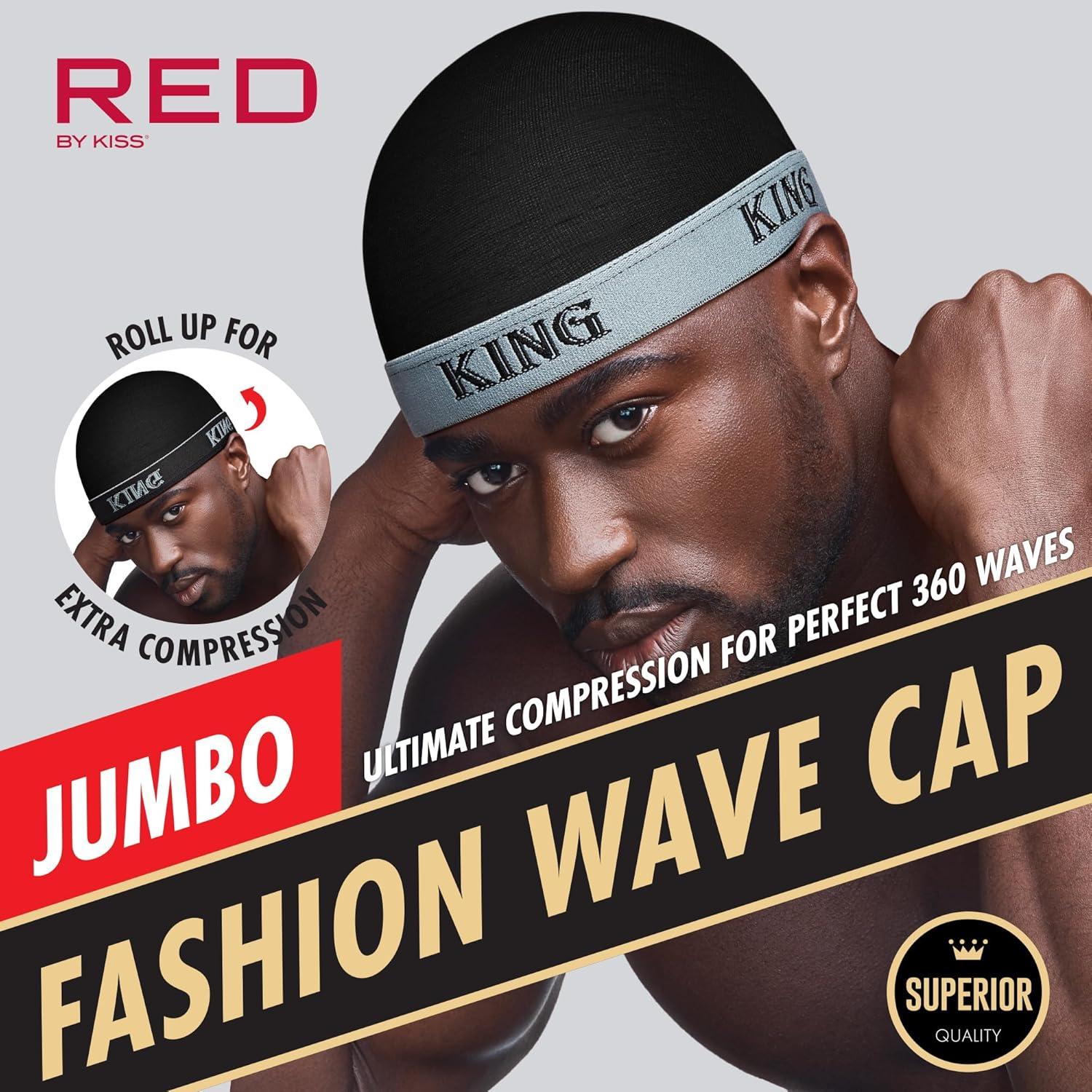 Red by Kiss Fashion Wave Cap, Ultra-Stretch Fit, Durable Elastic Band, All Day Hair Compression, Perfect Layering with Durag(Jumbo/Grey King)