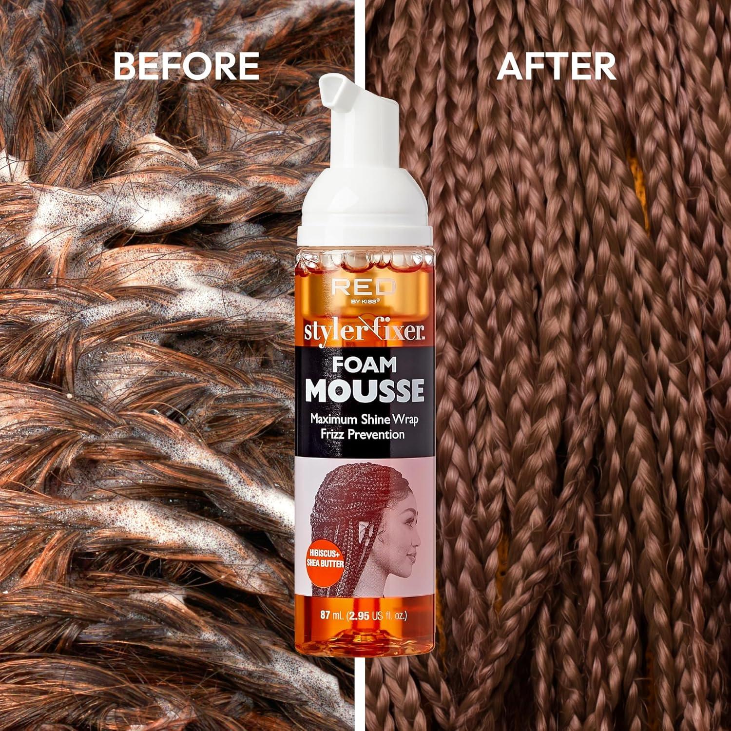 Red by Kiss Foaming Mini Travel Size Mousse, Maximum Shine Wrap Mousse, Reduce & Prevent Frizz, Define Curls, Hold Styles, Nourishes Dry & Crips Hair (Tea Tree + Peppermint)(Hibiscus + Shea Butter)