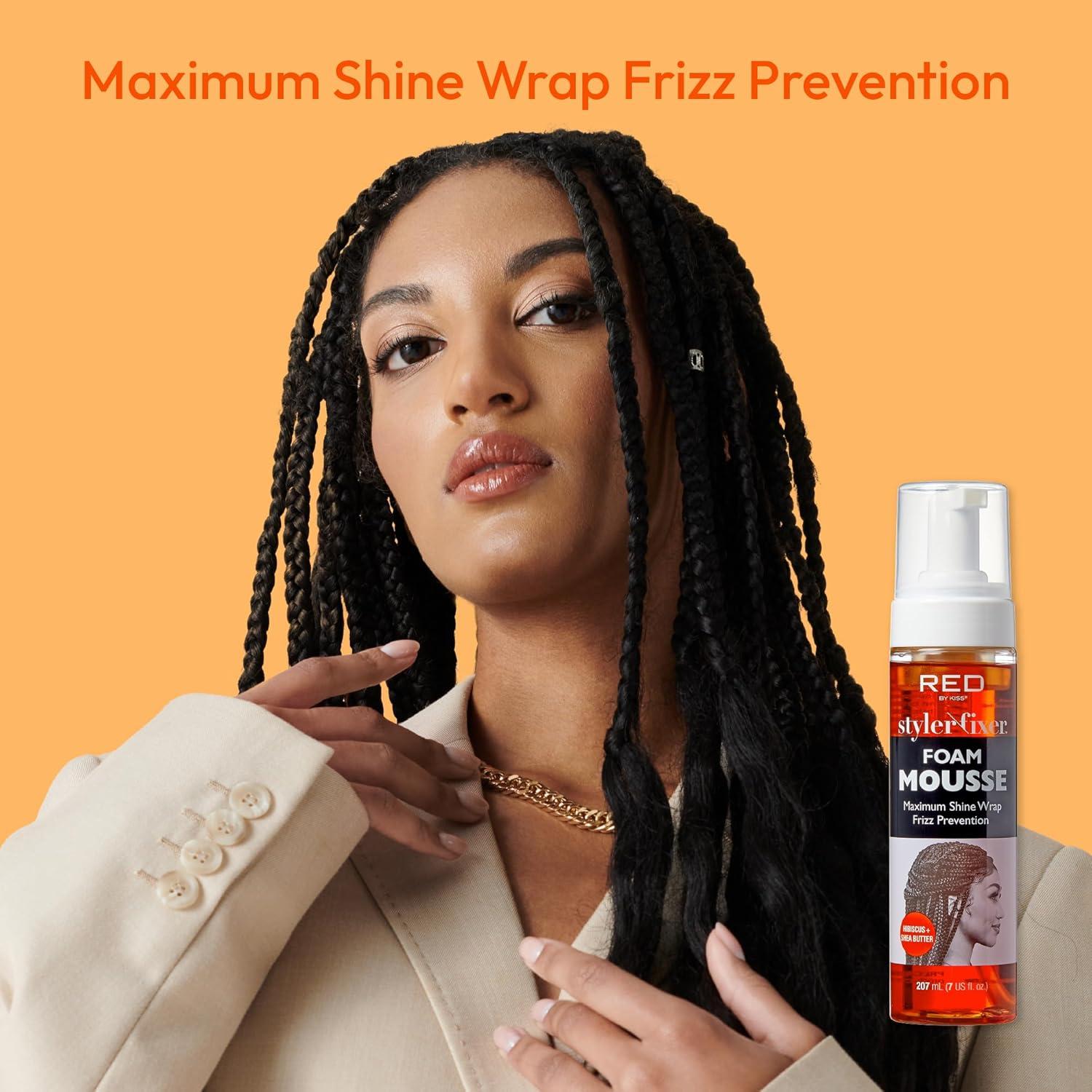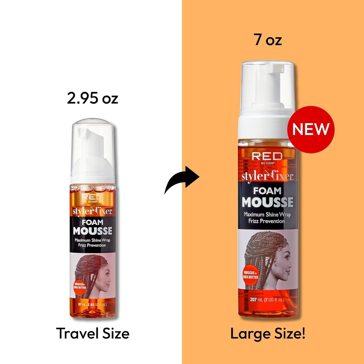 Red by Kiss Foaming Mousse, Maximum Shine Wrap Mousse, Reduce & Prevent Frizz, Define Curls, Set & Hold Styles, Nourishes Dry & Brittle Hair (Hibiscus + Shea Butter)(Hibiscus + Shea Butter)
