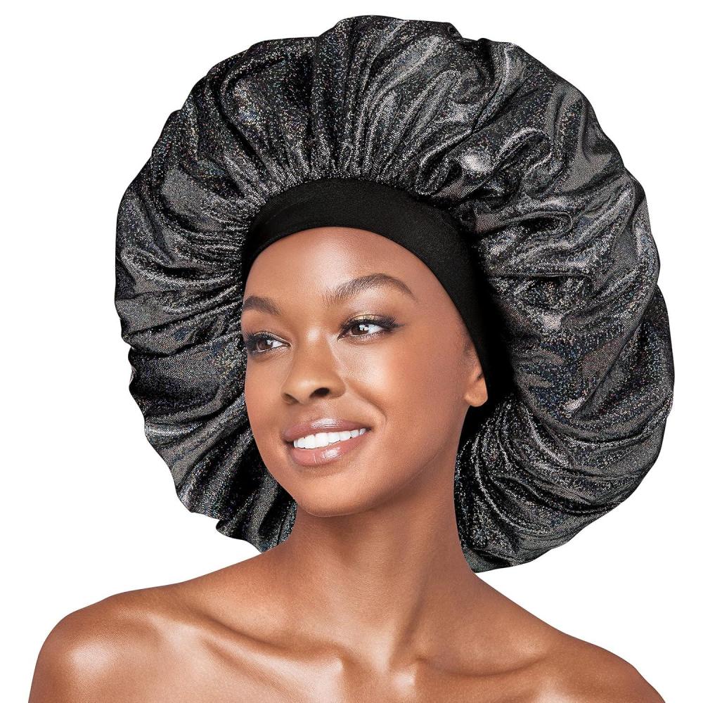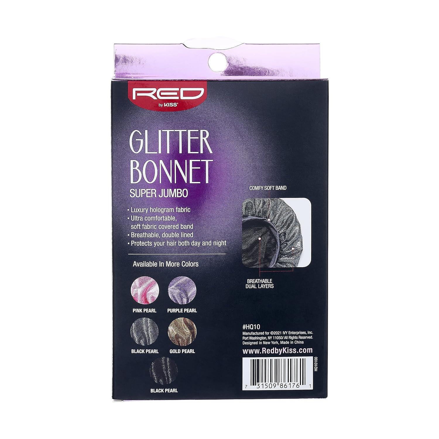 Red By Kiss Glitter Bonnet Premium Quality Sleeping Hair Bonnet Hair Cap, Super Jumbo (Pink Pearl)(Jet Black Pearl)