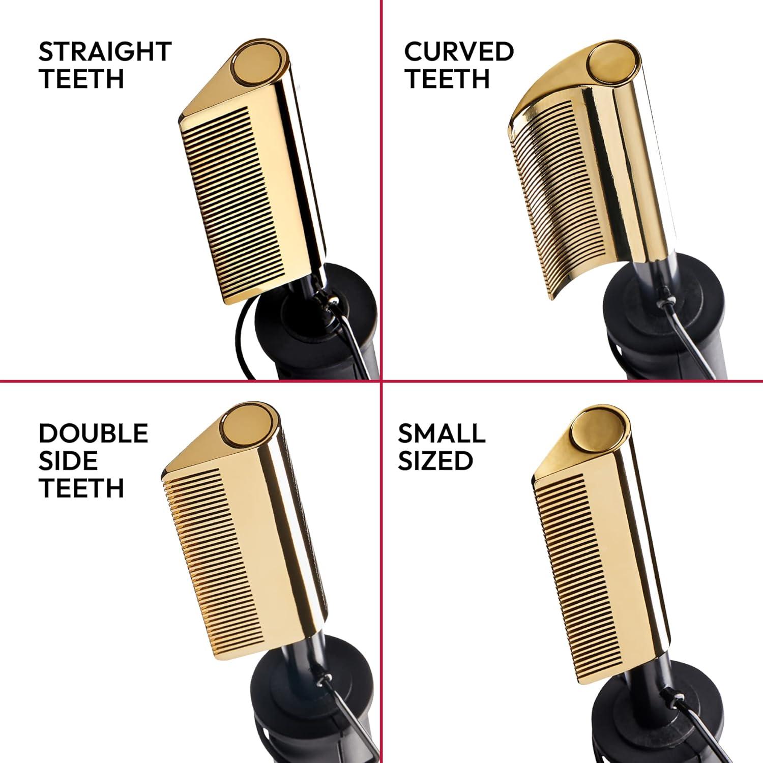 Red by Kiss Hot Comb Hair Straightener 450 Degrees, Curved Electric Heating Comb, Pressing Comb Brush for Straightening Hair and Beard, Curling Iron for Natural Black Hair(Straight Teeth)