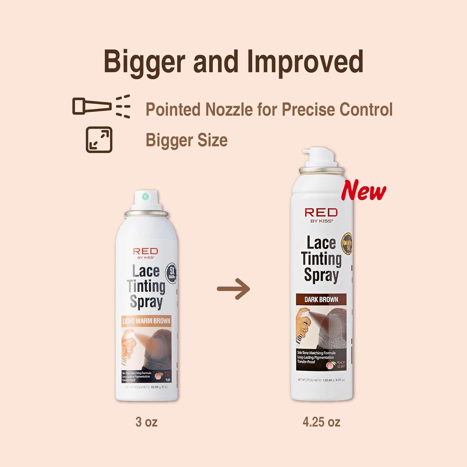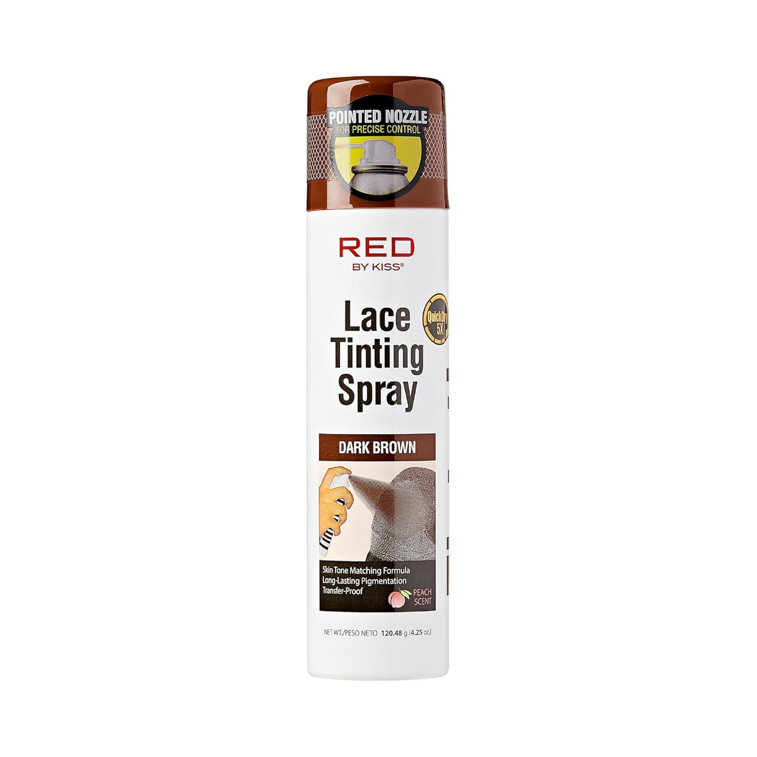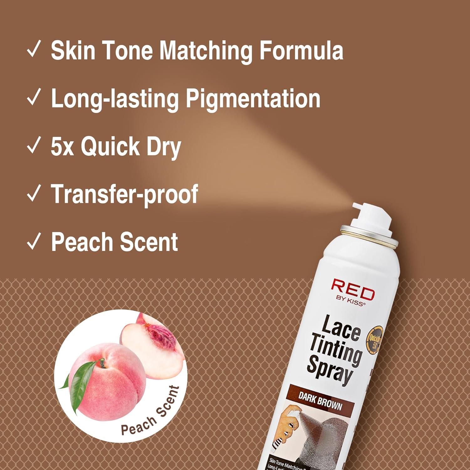 RED By Kiss Lace Tinting Spray, Quick Dry & Skin Tone Matching for Lace Wig, Transfer-proof, No Smudging, Long Lasting, Precision Control with Pointed Nozzle, Peach Scent(Dark Brown)