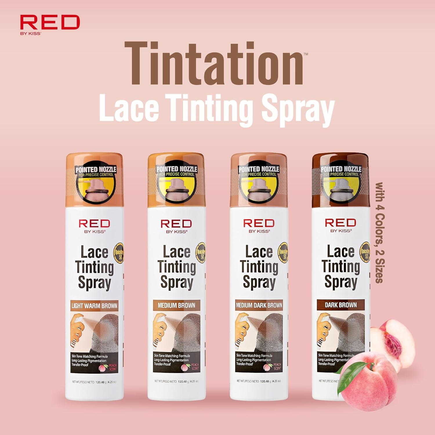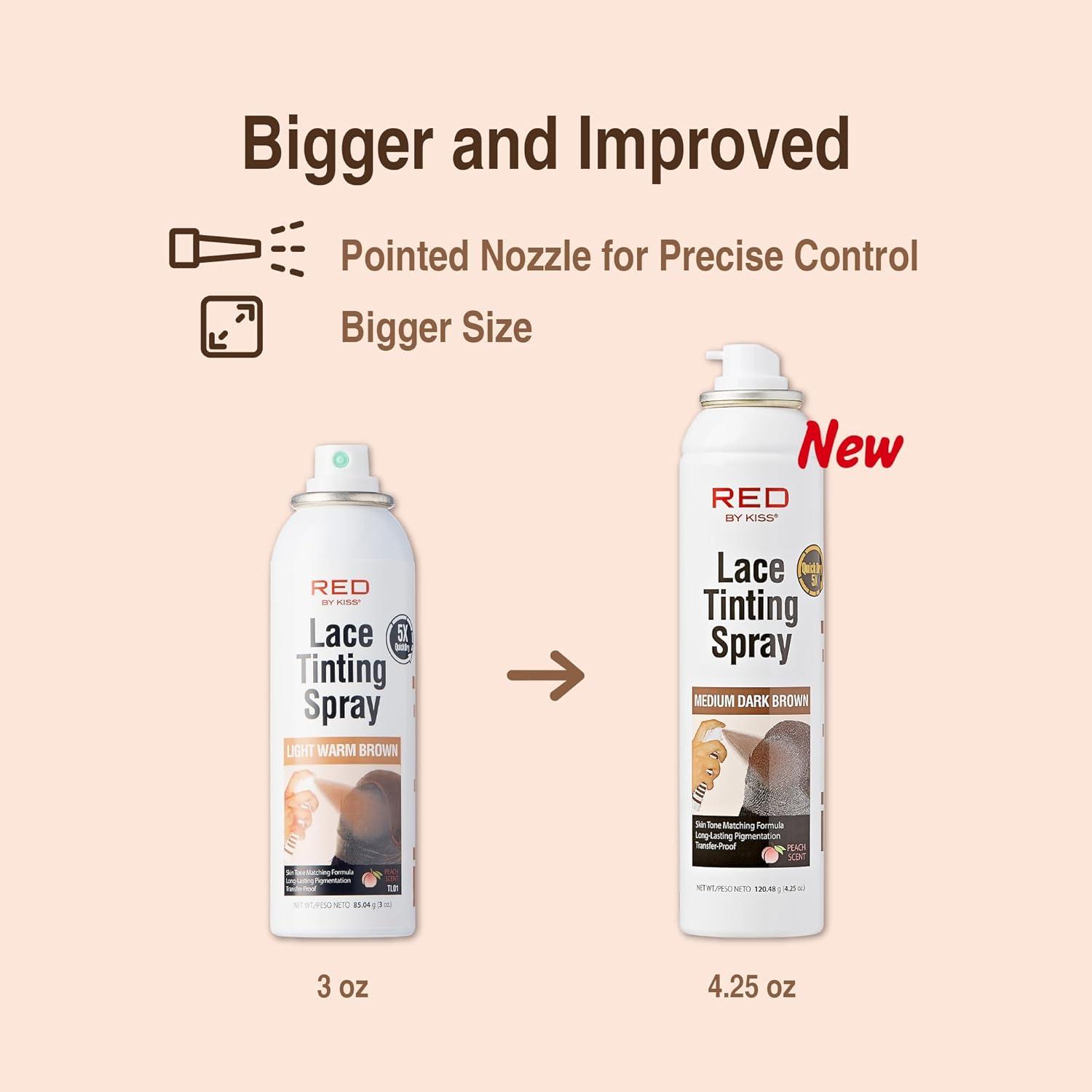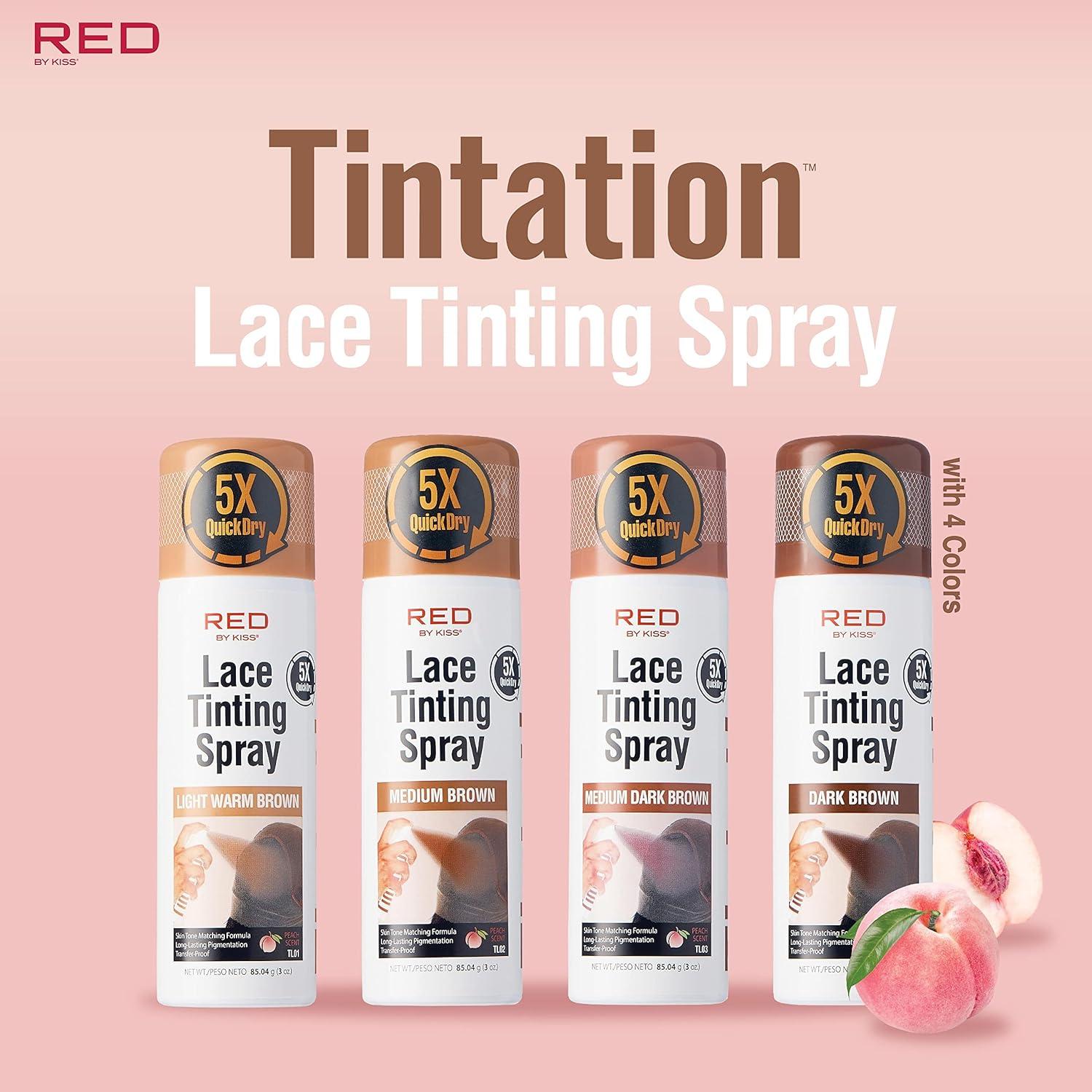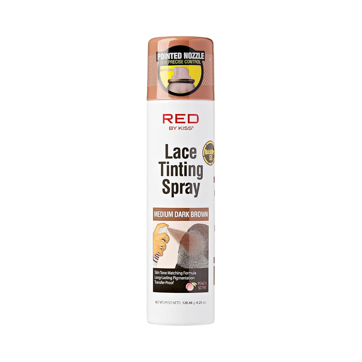 RED By Kiss Lace Tinting Spray, Quick Dry & Skin Tone Matching for Lace Wig, Transfer-proof, No Smudging, Long Lasting, Precision Control with Pointed Nozzle, Peach Scent(Medium Dark Brown)