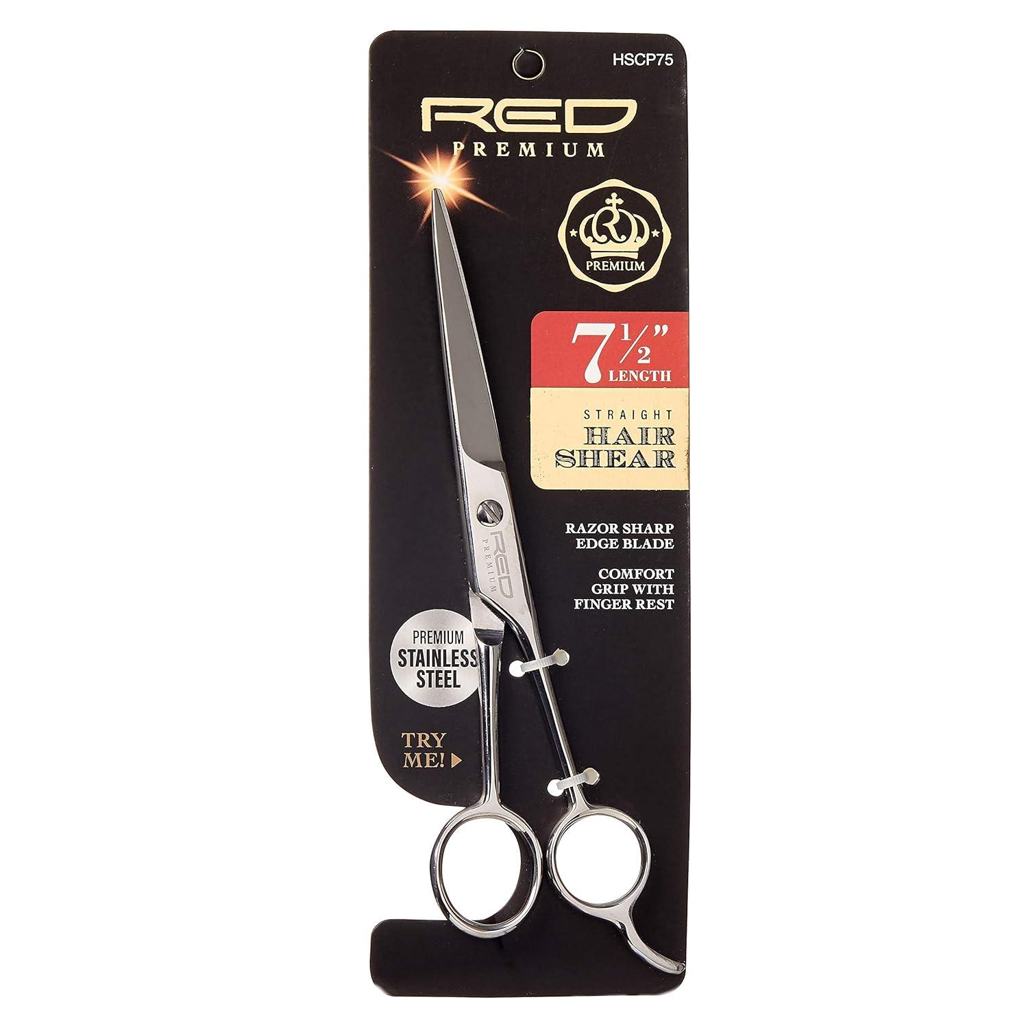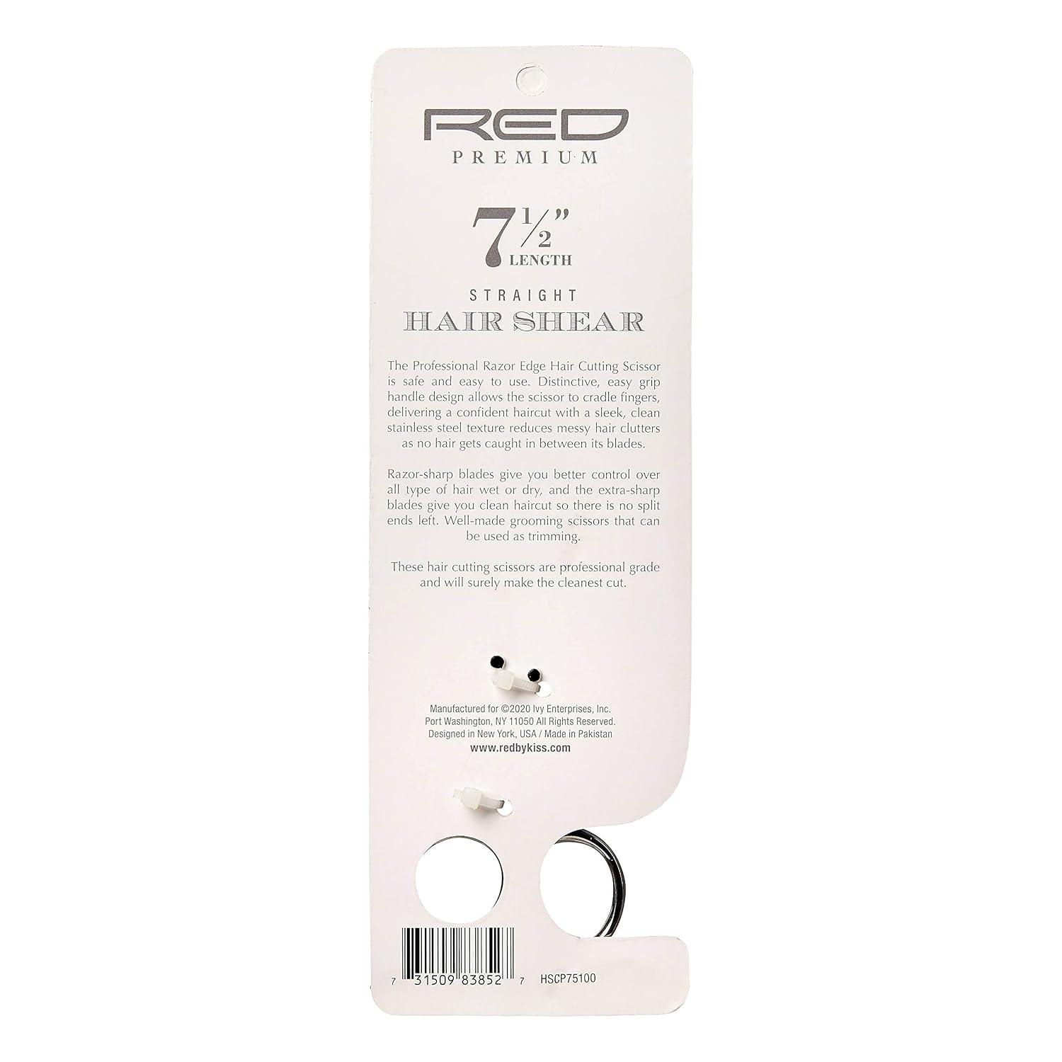 Red by Kiss Premium Hair Shear, 100% Stainless Steel Scissors (Premium, 6.5″) Razor Sharp Edge Blade, Comfort Grip with Finger Rest(7.5″)