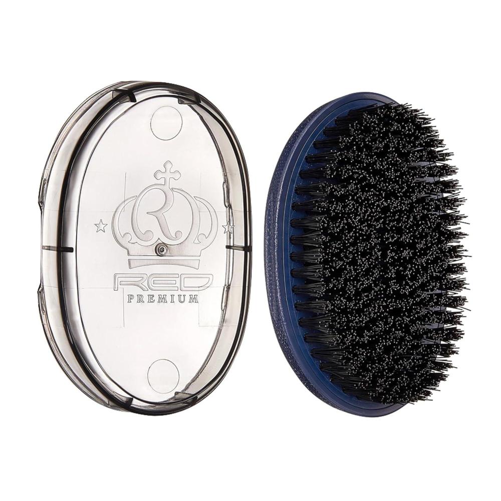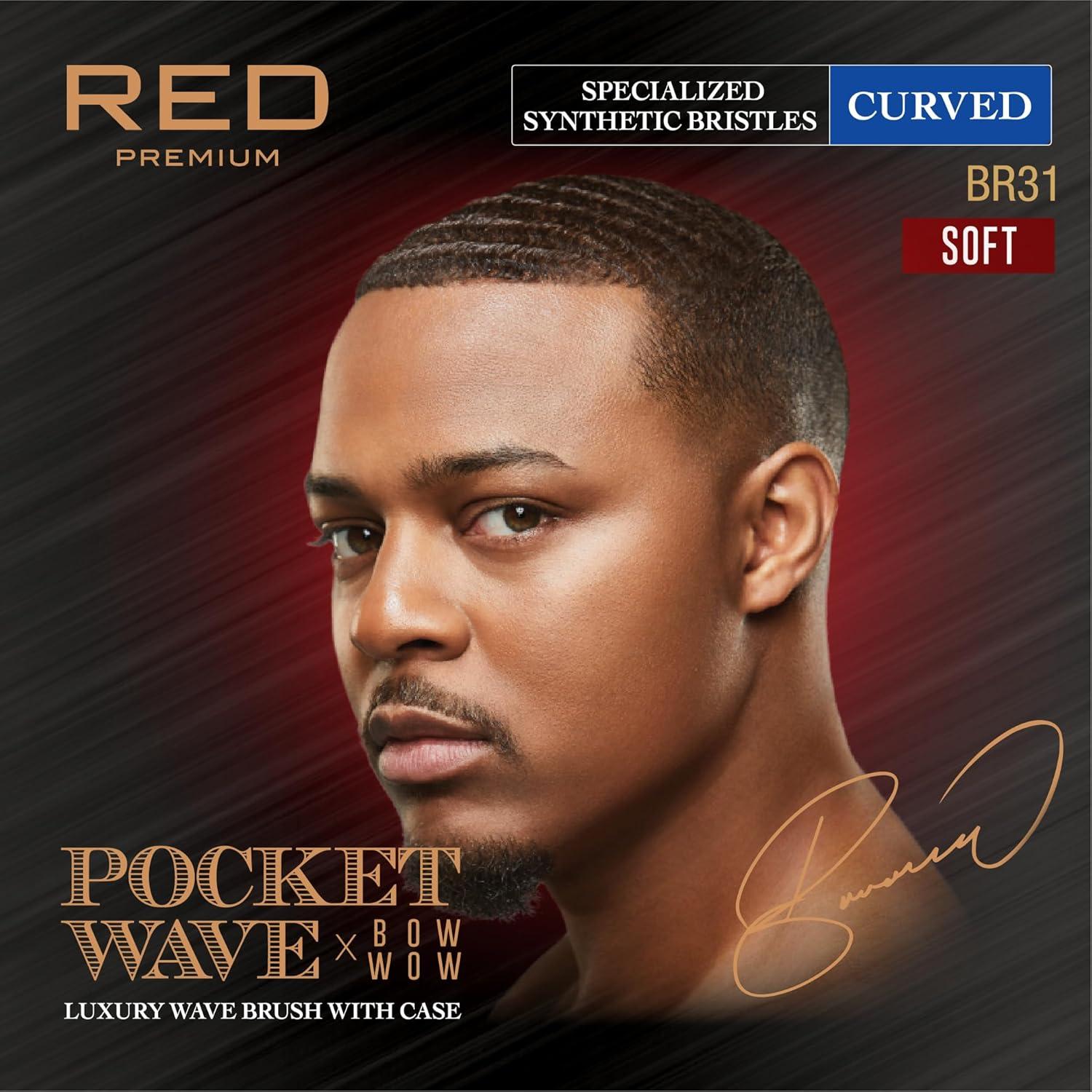 Red by Kiss Premium Pocket Wave Brush Hard – Bow Wow Curved Palm Brush for 360 Waves, High Density Hard Bristles for Coarse or Long Hair, Travel Cover, Ideal for Wolfing & Durag Use(Multi)