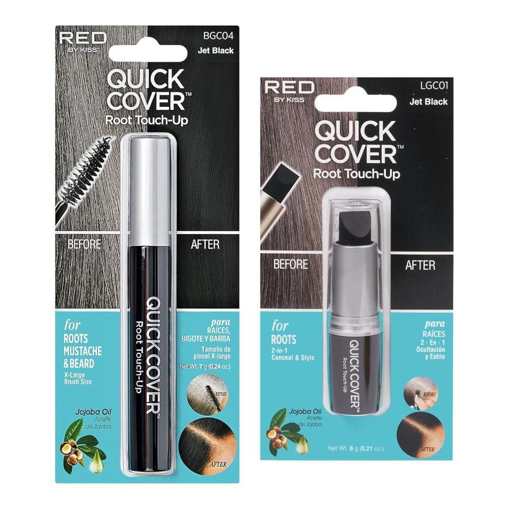 RED by Kiss Quick Cover Gray Hair Touch Up, Root Touch Up, Moisturize and Shine, Brush Type & Stick Type Set (Jet Black)