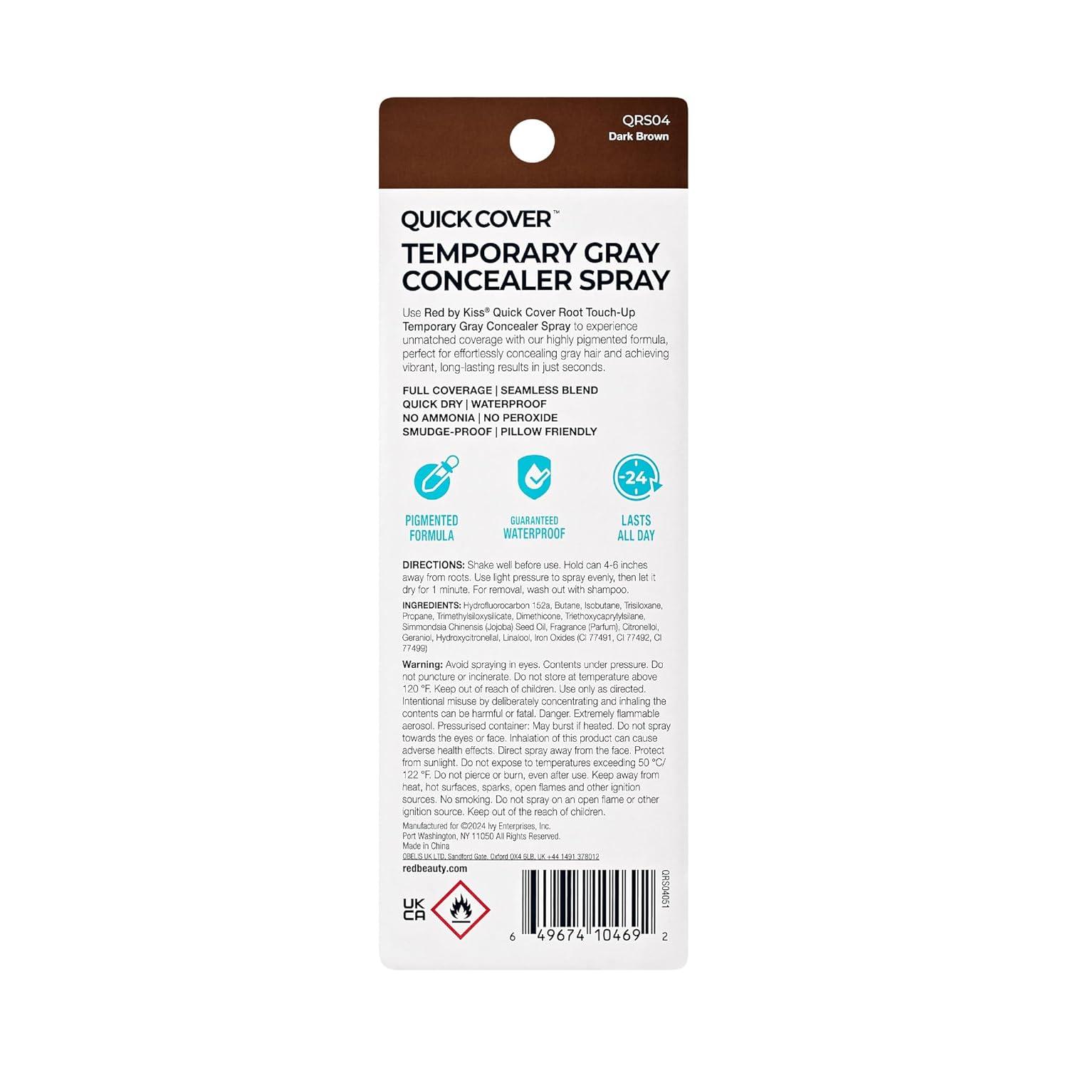 Red by Kiss Quick Cover Root Touch-Up Spray, Waterproof & Smudge-Proof Gray Coverage, Quick-Dry Formula with Jojoba Oil, Lightweight & Travel-Friendly (Medium Brown, 2oz)(Dark Brown)