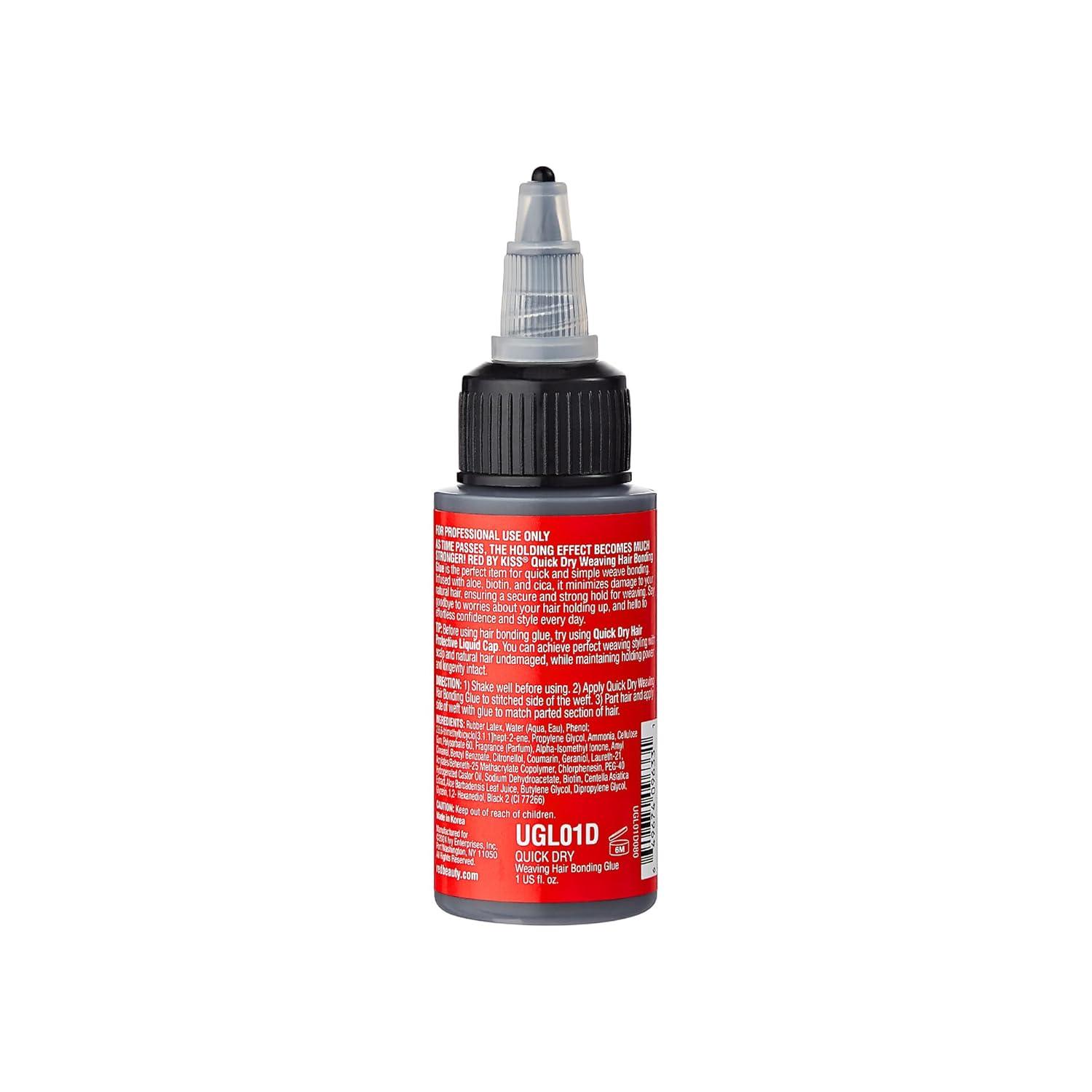 Red by Kiss Quick Dry Hair Bonding Glue, Professional Strong & Long-Lasting Weave Adhesive, Formaldehyde Free, Aloe Vera & Biotin Infused, Quick Weaving & Hair Extensions (8 fl.oz)(1 fl.oz)