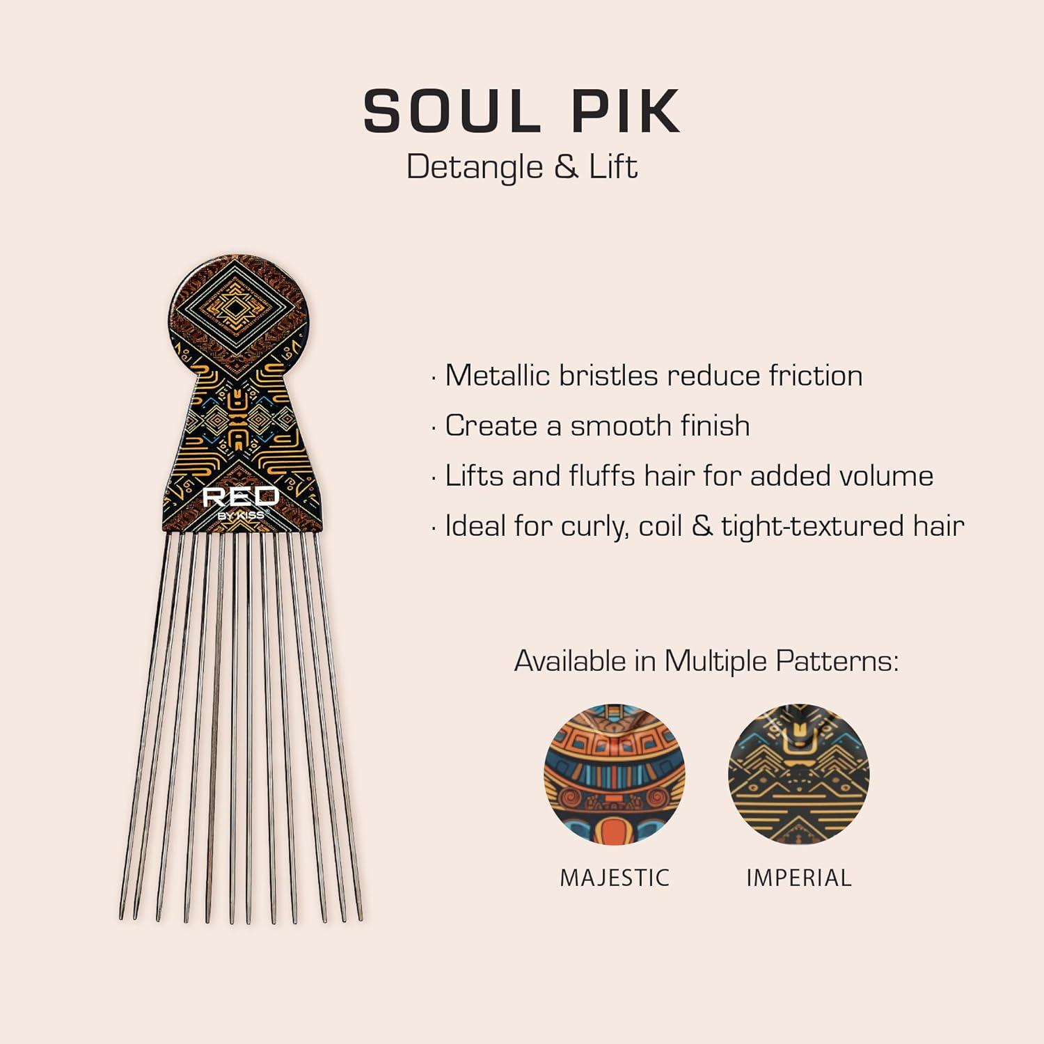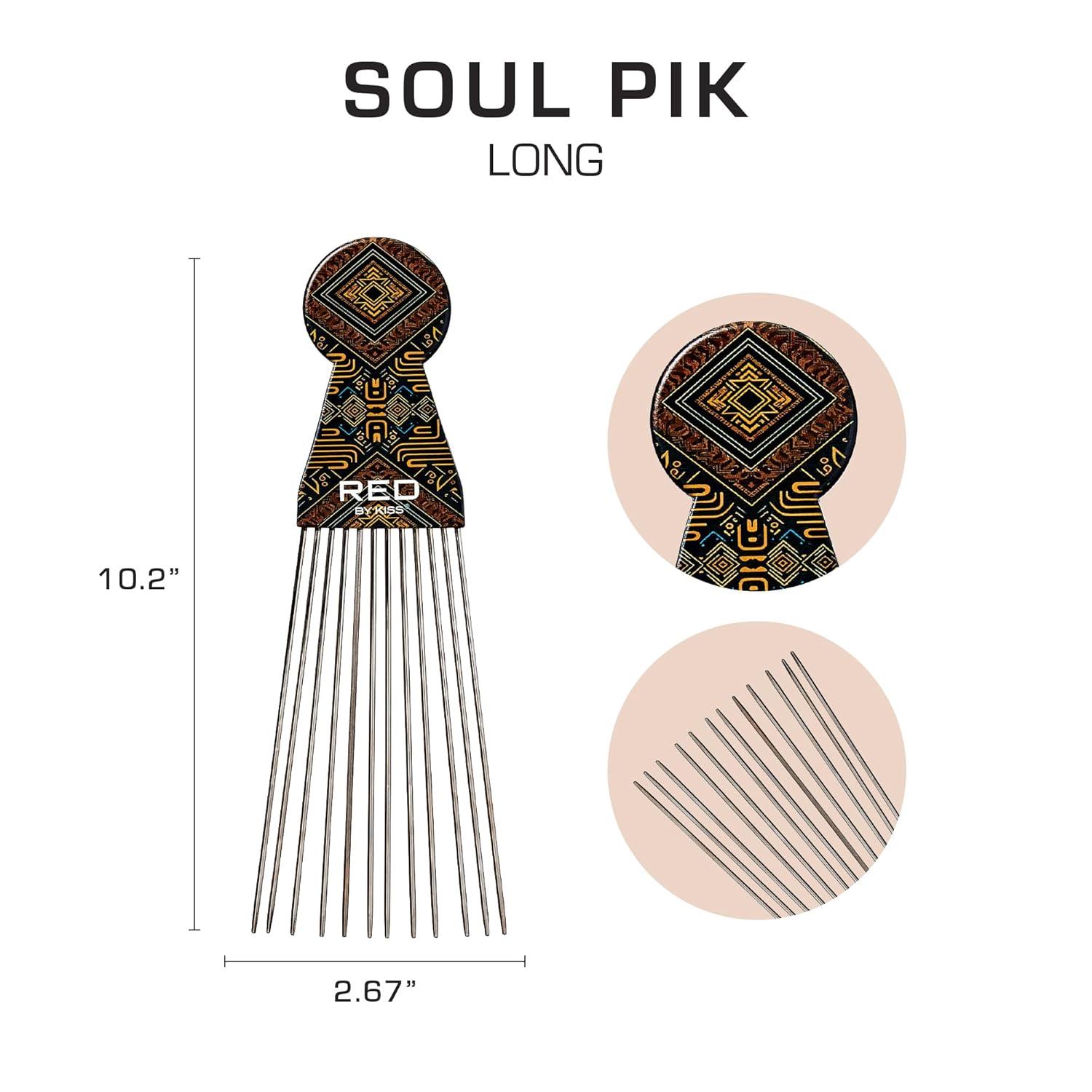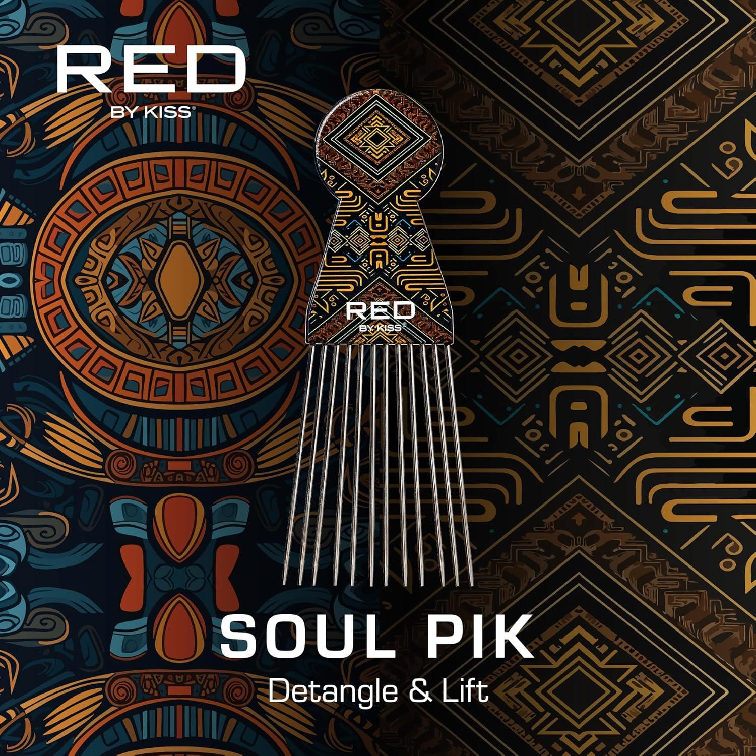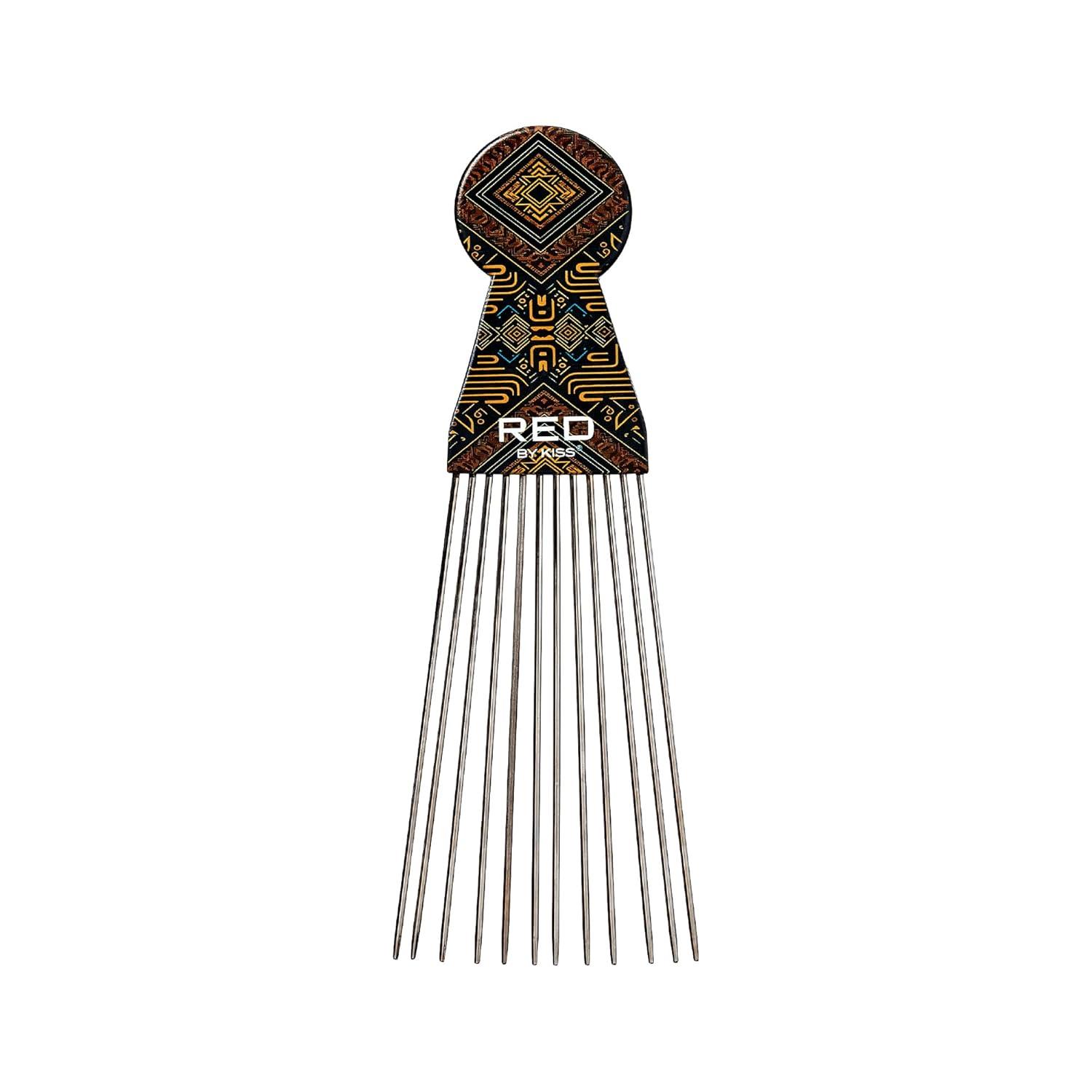 Red by Kiss Soul Pik Afro Comb, Scalp-Safe Skin Friendly Metal Teeth, For Curly & Straight Hair, Durable & Elegant Hairdressing Tool, Fashion Stylish for Daily Styling (Majestic Straight, Long)(Imperial Fan)