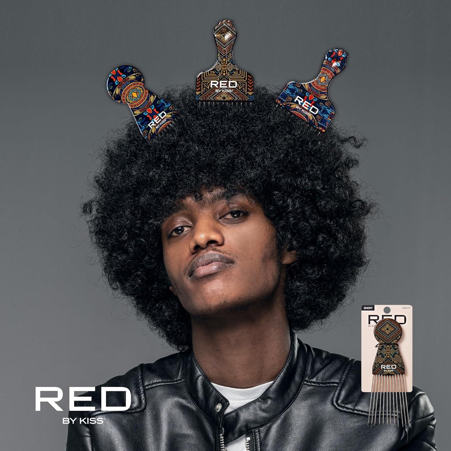 Celebrate the beauty, culture, and legacy of natural hair with the Red by Kiss Soul Pik Afro Comb—a must-have styling tool that’s more than just a comb. Designed to honor the heritage of textured hair, this exclusive comb by Red by Kiss embodies style, quality, and functionality. Perfectly suited for those who value both tradition and innovation, this Afro comb combines a sophisticated design with effective hair care functionality. Crafted with skin-friendly, smooth metal teeth, the Soul Pik glides gently through the hair without causing irritation or damage to the scalp, ensuring a comfortable and efficient styling experience. The comb is available in two unique shapes—straight and fan-shaped—allowing you to choose the style that best suits your hair type and desired look. The straight design offers precision and control, ideal for defining sections and creating volume, while the fan shape provides a wider coverage, making it perfect for fluffing and shaping your hair with ease. The comb’s durable construction and lightweight design make it an ideal choice for daily use on all hair types, from curly and coily to straight textures. With its compact size, the Red by Kiss Soul Pik Afro Comb fits perfectly in your bag, making it convenient to carry wherever you go. Whether you're preparing for a night out, touching up after a workout, or maintaining your hair throughout the day, this comb is the perfect companion for on-the-go styling. Adorned with intricate, exclusive patterns in a classic black design, this comb not only serves as a functional hairdressing tool but also as a stylish accessory that reflects the pride and beauty of natural hair. Proudly pick your soul and honor your roots with the Red by Kiss Soul Pik Afro Comb, designed to elevate and celebrate the legacy of natural hair.
