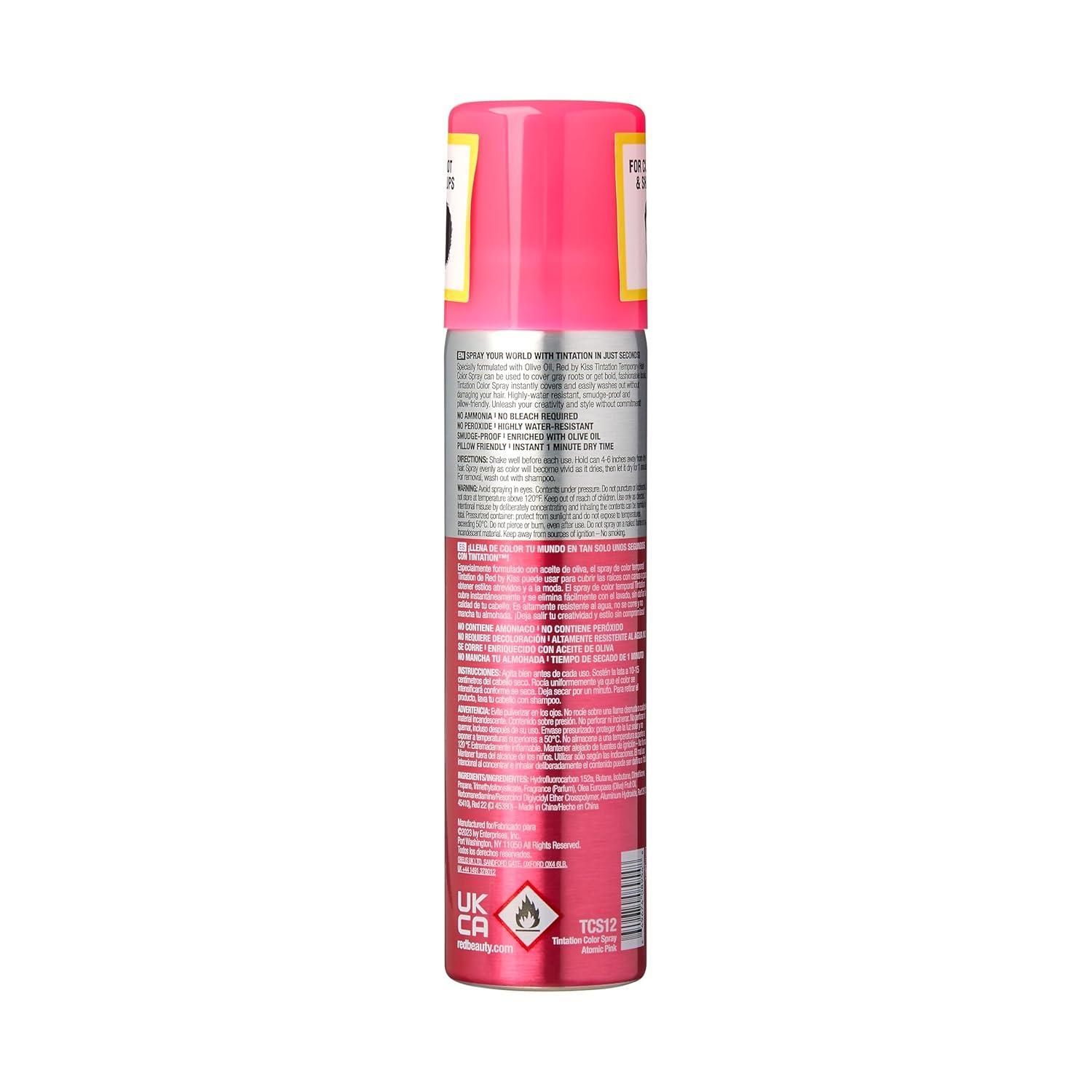Red by Kiss Tintation Temporary Hair Color Spray 2.82oz, Quick-Dry & Smudge-Proof, Vivid Color Washable Hair Dye, Styling Spray Cosplay Halloween Birthday Party Festival (Atomic Pink)